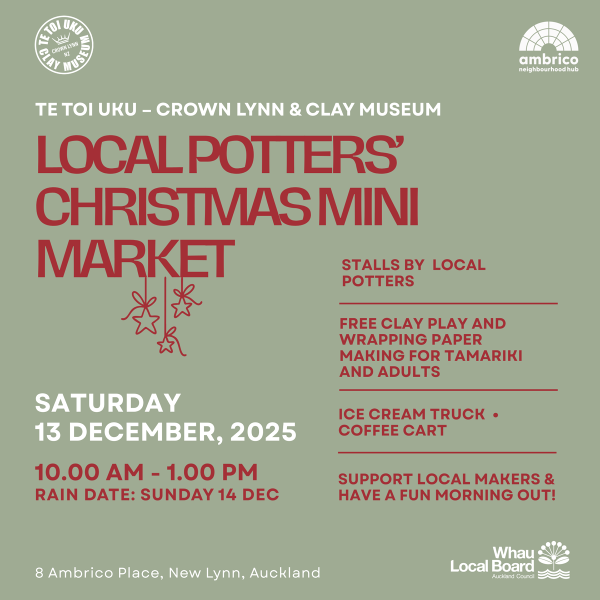 Te Toi Uku – Crown Lynn & Clay Museum is excited to host our very first Local Potters’ Market, just in time for Christmas!